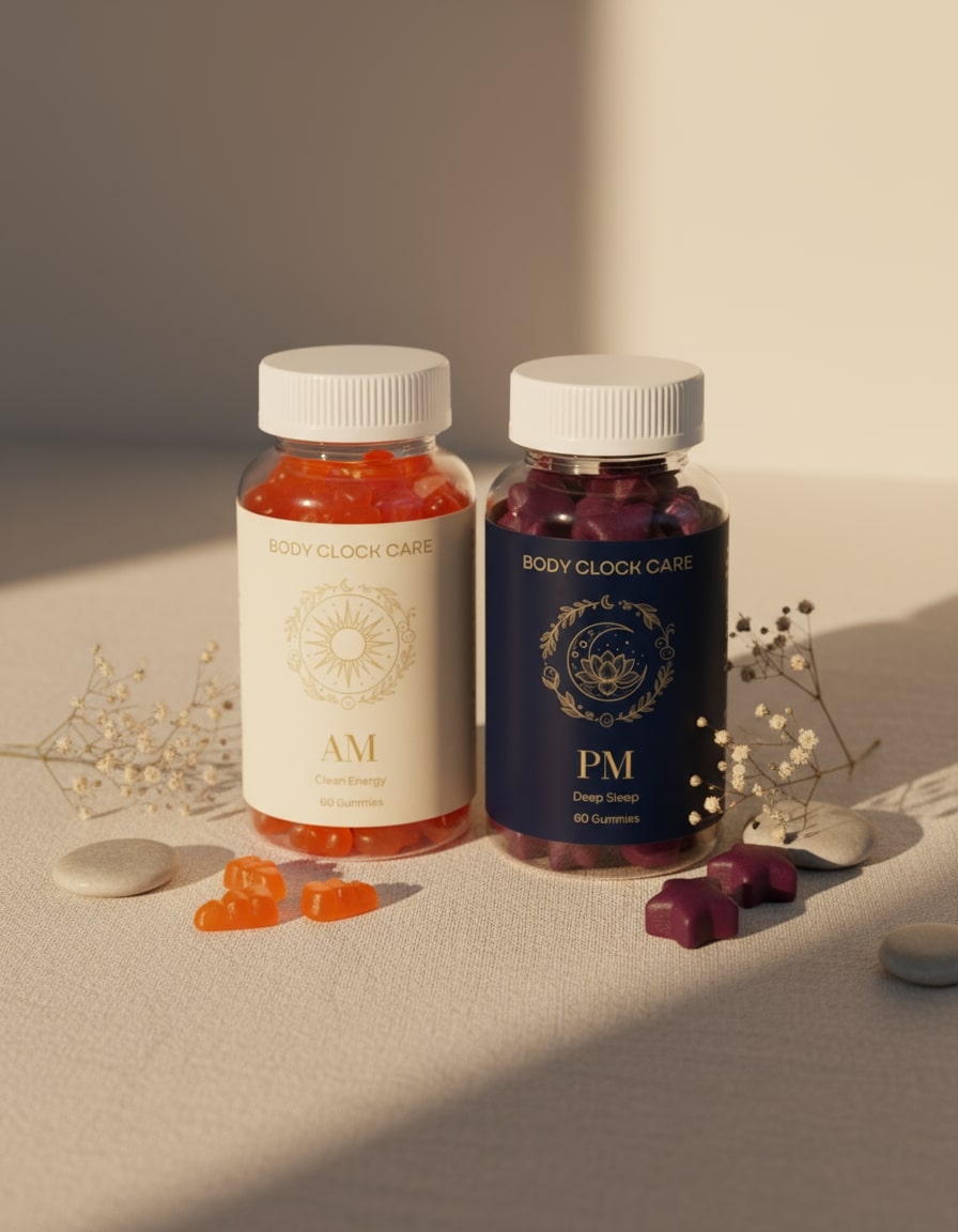 AM + PM gummies that fix what coffee and melatonin can't. Clean morning energy. Natural evening wind-down. Your body clock reset in 7 days.